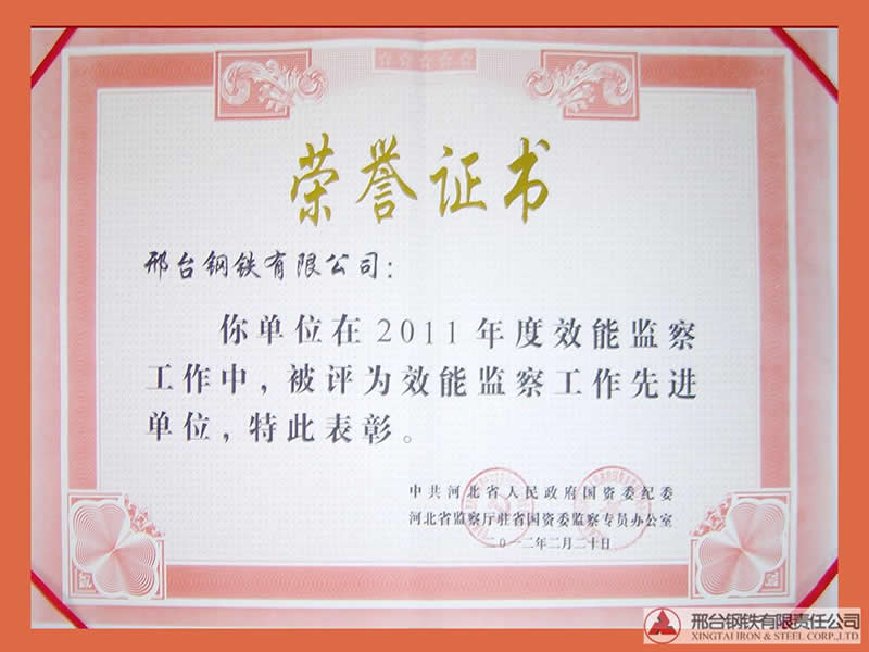 - 邢鋼榮獲“2011年度效能監(jiān)察工作先進單位”