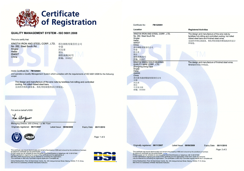 2007年12月,邢鋼冷鐓和冷擠壓用鋼盤條獲冶金產(chǎn)品實(shí)物質(zhì)量金杯獎(jiǎng)。