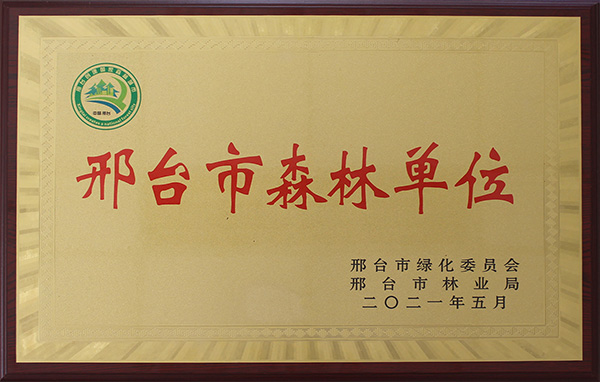 2021年5月,邢鋼獲得由邢臺(tái)市綠化委員會(huì)、邢臺(tái)市林業(yè)局頒發(fā)的“邢臺(tái)市森林單位”稱(chēng)號(hào)。