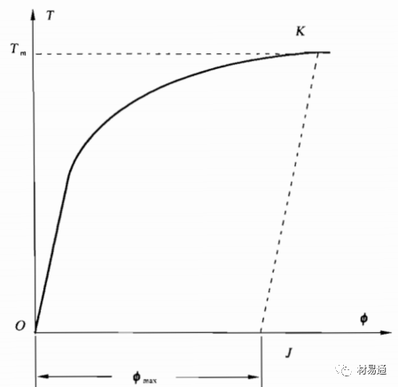 扭轉(zhuǎn)圖與拉伸試驗測定的應(yīng)力—應(yīng)變曲線相似,這是因為在扭轉(zhuǎn)時試件的形狀不變,其變形始終是均勻的,即使進入塑性變形階段,扭矩仍隨變形的增大而增加,直至試件斷裂。