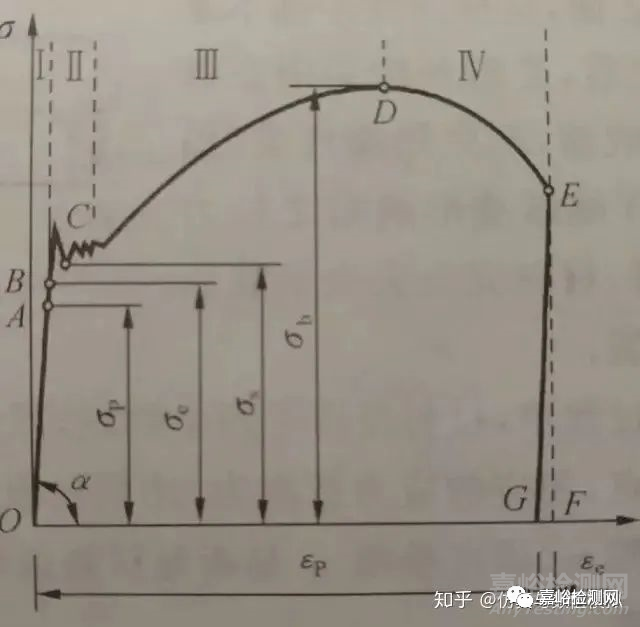 破壞階段,在進(jìn)入強(qiáng)化階段后,應(yīng)變隨應(yīng)力的增加而增加,最后到達(dá)強(qiáng)度極限。由此可見關(guān)于強(qiáng)度的測量是在于材料彈性形變之后而強(qiáng)度極限之前。