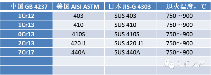 表 5:馬氏體不銹鋼的參考退火溫度
