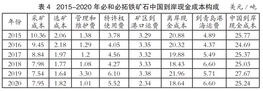 國際四大礦鐵礦石主要成本分析