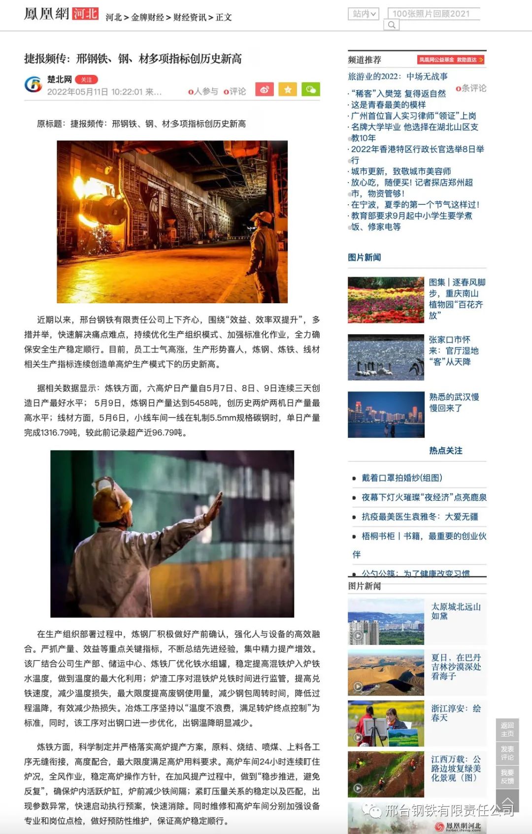 近期以來,邢臺鋼鐵有限責任公司上下齊心,圍繞“效益、效率雙提升”,多措并舉,快速解決痛點難點,持續(xù)優(yōu)化生產(chǎn)組織模式、加強標準化作業(yè),全力確保安全生產(chǎn)穩(wěn)定順行。目前,員工士氣高漲,生產(chǎn)形勢喜人,煉鋼、煉鐵、線材相關生產(chǎn)指標連續(xù)創(chuàng)造單高爐生產(chǎn)模式下的歷史新高。
