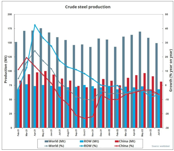 來源:世界鋼鐵協(xié)會(huì) 發(fā)布時(shí)間:2022年08月24日 點(diǎn)擊數(shù):