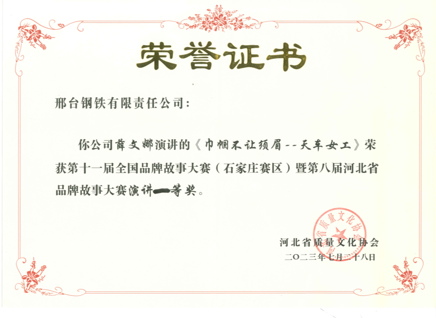 多年來,邢鋼公司高度重視品牌建設(shè)和運(yùn)營,以打造世界知名品牌為目標(biāo),高質(zhì)量發(fā)展為引領(lǐng),不斷提高產(chǎn)品質(zhì)量和服務(wù)水平,實(shí)施產(chǎn)品轉(zhuǎn)型升級,打造邢鋼精品特鋼品牌?,F(xiàn)已連續(xù)四次參加品牌故事大賽活動(dòng),斬獲25個(gè)獎(jiǎng)項(xiàng)殊榮。