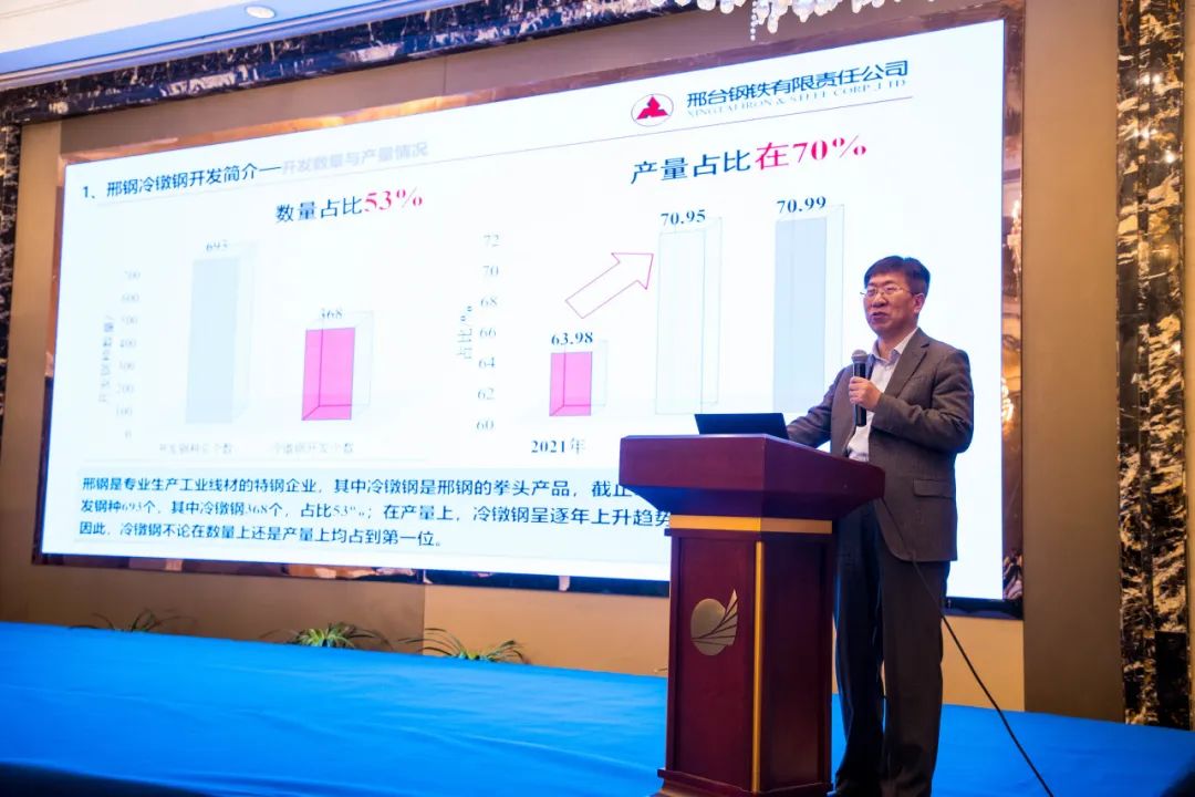 期間,邢鋼總經(jīng)理彭世丹作了《新規(guī)劃引領(lǐng)新未來(lái),新邢鋼再鑄新輝煌》報(bào)告,邢鋼董事長(zhǎng)助理、總工程師田新中作了《緊固件用鋼的開(kāi)發(fā)和質(zhì)量控制技術(shù)》報(bào)告。浙江國(guó)檢檢測(cè)技術(shù)公司副總經(jīng)理王慧、晉億公司質(zhì)量技術(shù)部經(jīng)理張勇、中化創(chuàng)新研究院雙碳咨詢事業(yè)部總經(jīng)理劉通、上善院研發(fā)工程師楊現(xiàn)亮、南京工程學(xué)院教授趙秀明、上海納特汽車標(biāo)準(zhǔn)件公司研發(fā)總監(jiān)李軍正分別進(jìn)行了行業(yè)技術(shù)報(bào)告分享。