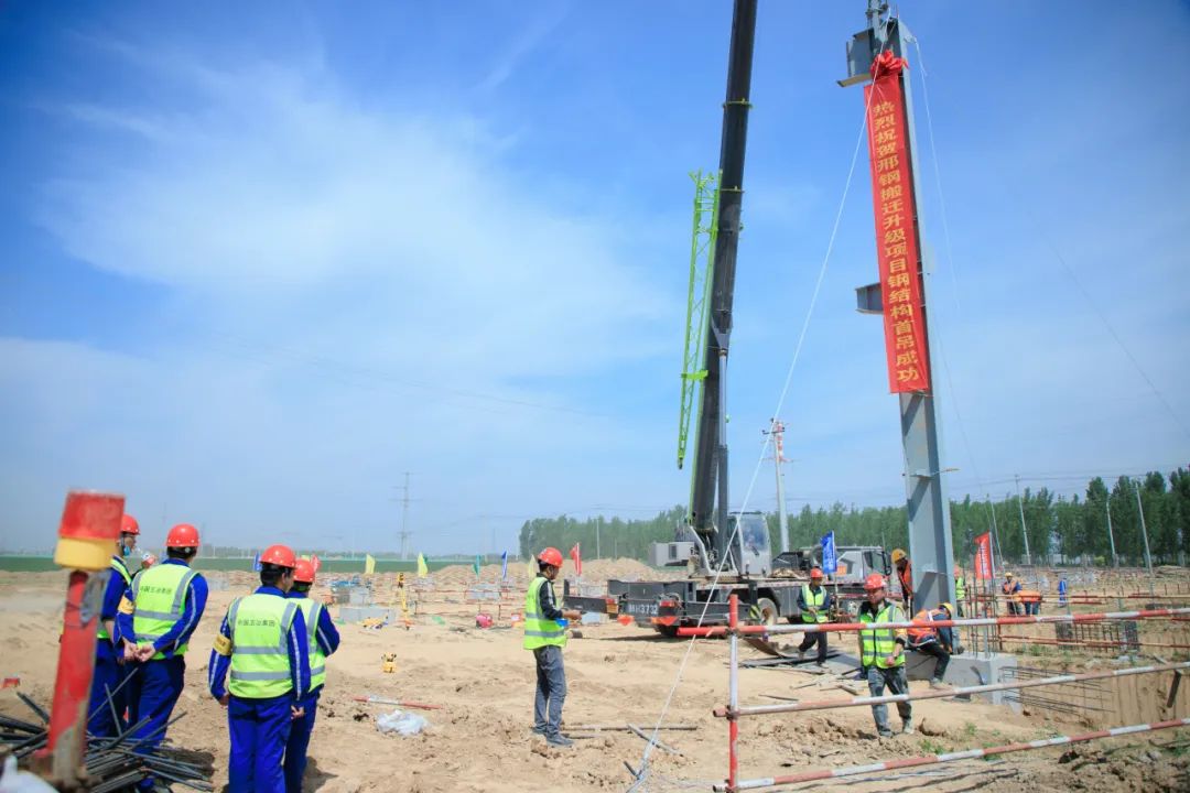 It is reported that the first steel structure lifting is a crucial milestone in the relocation and upgrading project of Xingtai Iron and Steel. To ensure the smooth hoisting of the first steel column, the project management team fully implemented the work requirements proposed by Zhang Yuming, the Party Committee Secretary and Chairman of the company, which is to "build the new Xingtai Iron and Steel into an international first-class benchmark enterprise for special steel long products." Adhering to the principle of "planning first," they collaboratively developed a detailed construction plan with the construction unit. Prior to the lifting, the construction unit's management personnel conducted thorough safety and technical briefings and training for the construction teams, ensuring strict adherence to standardized and規(guī)范化 procedures during the construction process.