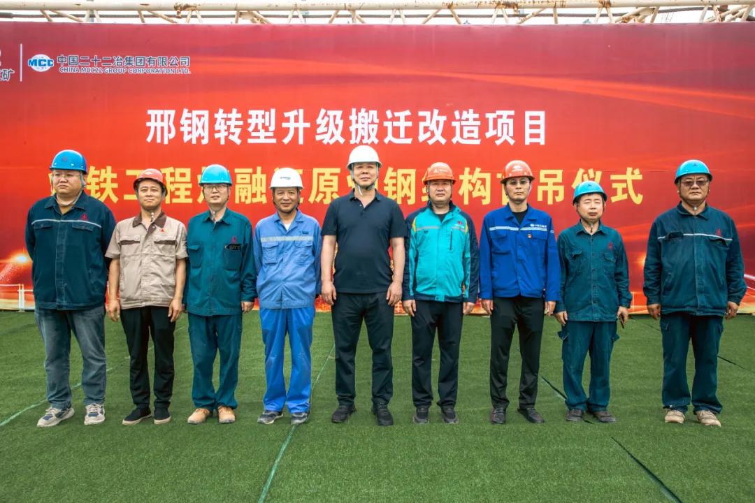 On July 8, the ironmaking zone of Xingtai Steel's relocation and transformation project witnessed a historic moment as the 46-ton steel baseplate of the smelting reduction furnace was successfully installed. The ceremony, attended by Chairman Zhang Yuming, General Manager Peng Shidan, Vice Presidents Ma Baoliang, Liu Wanchao, and Han Qinglian, along with project leaders, marked the official commencement of the furnace installation phase - a significant step in the company's green transformation strategy.