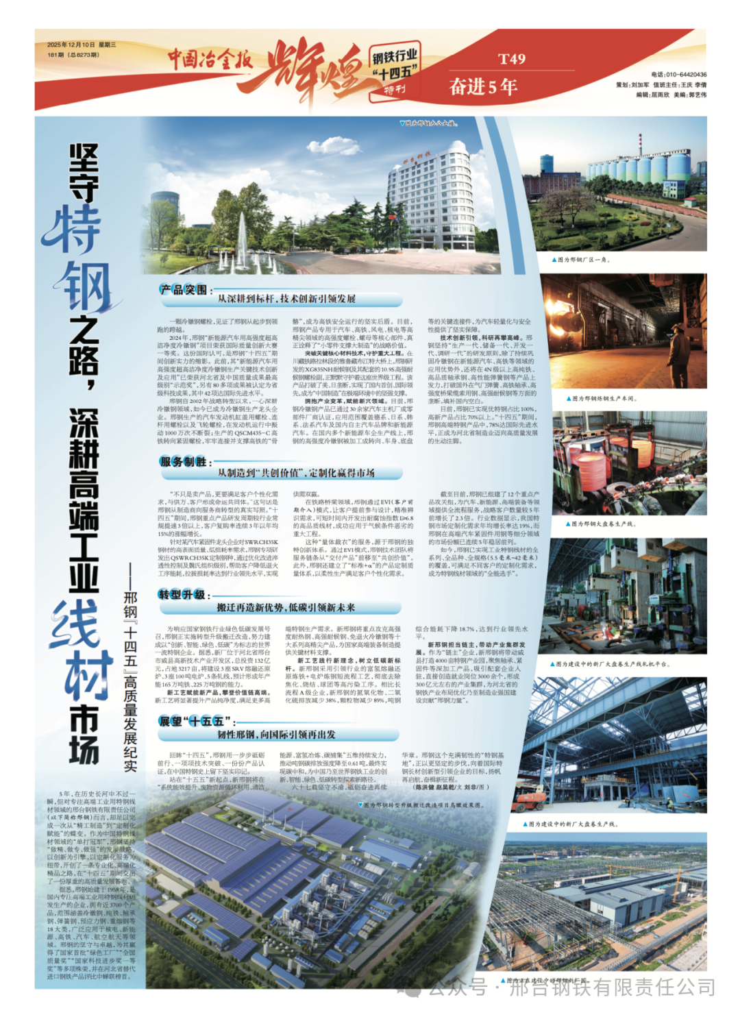 5年,在歷史長河中不過一瞬,但對專注高端工業(yè)用特鋼線材領(lǐng)域的邢臺鋼鐵有限責(zé)任公司(以下簡稱邢鋼)而言,卻足以完成一次從“精工制造”到“定制化賦能”的蝶變。作為中國特鋼線材領(lǐng)域的“單打冠軍”,邢鋼堅(jiān)持“做精、做專、做強(qiáng)”的發(fā)展戰(zhàn)略,以創(chuàng)新為引擎,以定制化服務(wù)為紐帶,開創(chuàng)了一條專業(yè)化、高端化精品之路,在“十四五”期間交出了一份厚重的高質(zhì)量發(fā)展答卷。