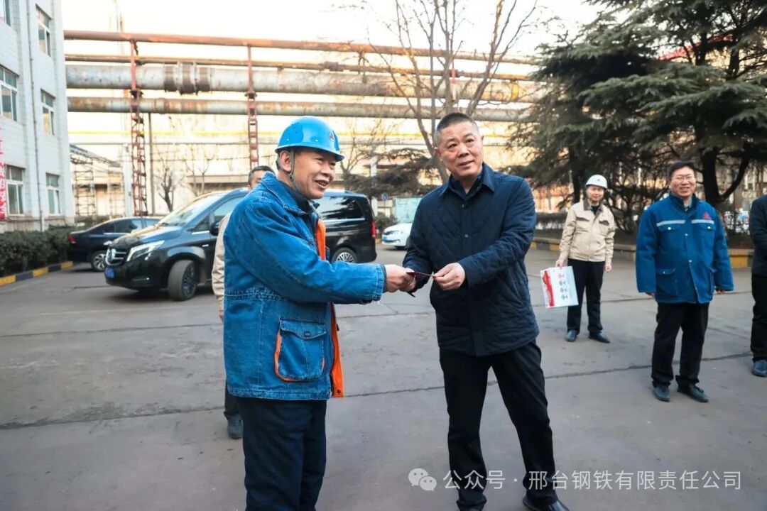 慰問中,張育明董事長(zhǎng)對(duì)大家在過去一年里為邢鋼老廠區(qū)穩(wěn)定和新廠區(qū)建設(shè)付出的艱辛努力表示衷心感謝。他表示,鋼鐵是工業(yè)的脊梁,一線是企業(yè)的根基。在萬家團(tuán)圓的時(shí)刻,大家用堅(jiān)守詮釋責(zé)任,用奉獻(xiàn)點(diǎn)亮新春,生動(dòng)展現(xiàn)了邢鋼人“鐵一般擔(dān)當(dāng)”的精神風(fēng)貌。